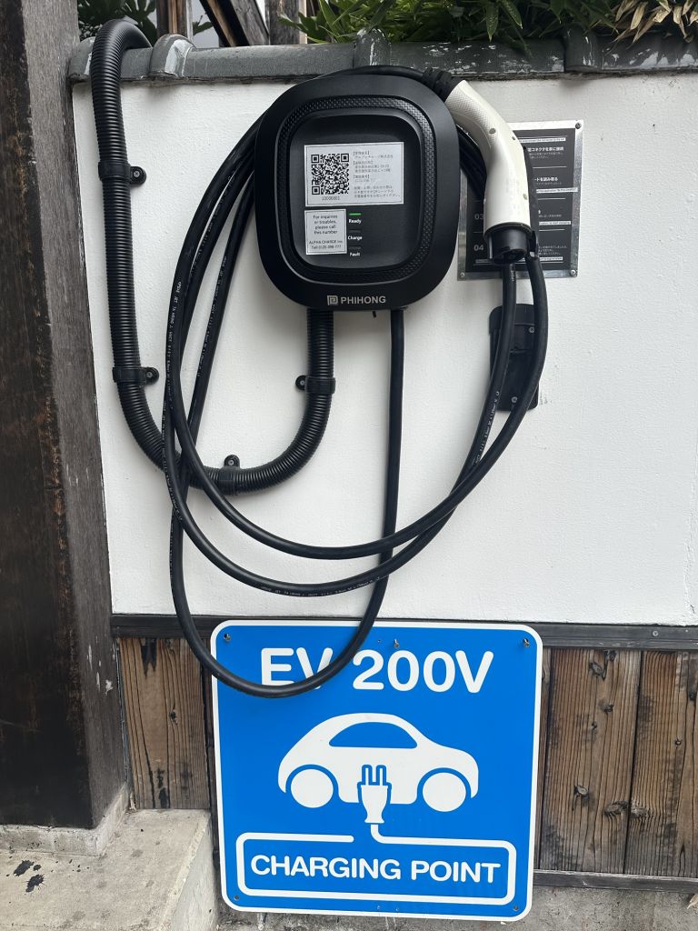 場所は玄関前と言う便利な所です。The charger is located right in front of our inn’s entrance.