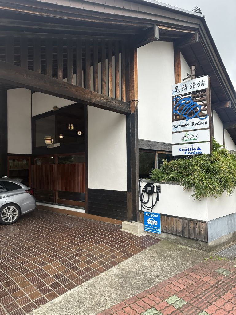 我が亀清旅館は温泉を大事に使っている所から地球の恵みが貴重だと思います、ロビーの暖は薪ストーブを使っているなど、ゼロカーボンを目指しています。EVの応援もその戦略の一つなので、宜しくお願いします。We at Kamesei Ryokan are trying our best to cognizant of our impact on the planet. From our careful use of the onsen water to using a wood stove to heat our lobby, we try to be as carbon neutral as possible. Providing a charger for EV owners is just one part of our efforts.